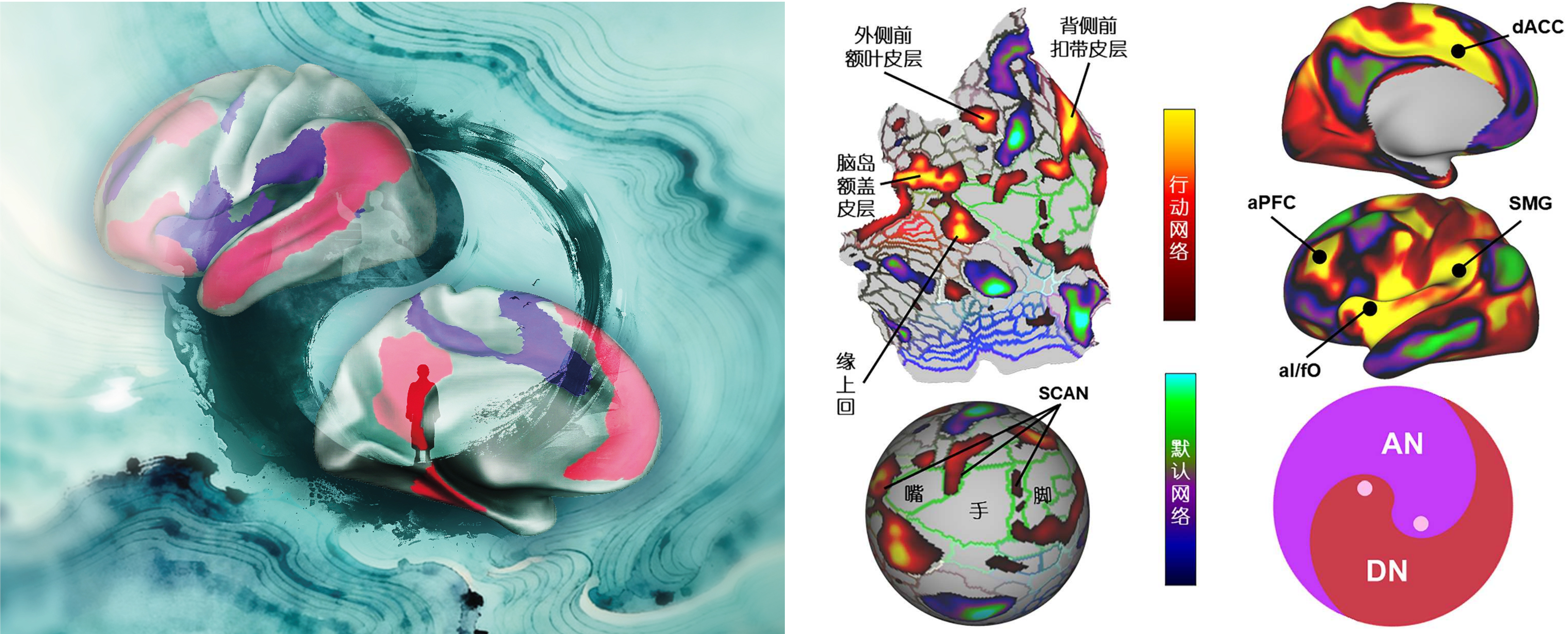 从“默认”到“行动”:大脑功能系统的“阴阳平衡” 大脑在无明确认知任务的静息状态下,并非处于“空闲”状态,而是由一组高度协同的脑区持续活动,形成所谓“默认网络”(Default Network,DN),负责自我反思、记忆整合等内在思维活动。与之相对,当个体需要对外界做出反应、执行目标任务时,大脑则进入“行动模式”。研究团队指出,与这一模式对应的,正是新近被明确界定并命名的大脑“行动网络”。 “行动网络”由前扣带回、前脑岛、缘上回、前额叶等关键皮层区域,以及丘脑、基底节和小脑等皮层下结构协同构成。它在目标导向行为中持续激活,参与注意力调控、运动规划、错误反馈和认知维持等多种高级功能。论文强调,行动网络与默认网络在功能上既相互拮抗又动态统一,形成类似“阴阳太极”般的动态平衡系统,共同维持大脑在“内省”与“行动”之间的高效切换与资源优化分配。 突破“执行控制”传统认知,构建“三维一体”网络体系 过去,行动网络相关脑区常被归类为“扣带岛盖网络”或“执行控制网络”,但功能界定模糊,解剖结构不明。本研究基于上千人规模的高精度成年脑成像数据,清晰绘制出行动网络的全脑功能图谱(上图右),并提出其“皮层-基底节/丘脑-小脑”三维一体的解剖架构。这意味着行动网络不仅局限于皮层,更是一个跨越多个脑区、整合运动、认知与感觉信息的大尺度系统,对于体系化研究人类脑智行为关联奠定了系统基础。 论文进一步指出,行动网络与近年发现的“躯体-认知行动网络”(SCAN)存在强连接,共同协调复杂行为与内脏生理调节,实现“身心合一”的高效行动。这一发现挑战了传统上“认知”与“运动”彼此独立的观点,揭示了大脑在发起和维持目标行为时的多系统整合机制。 为脑疾病研究与类脑智能提供新视角 人脑行动网络的提出,不仅完善了人们对大脑工作模式的理解,也为多种脑疾病的机制研究带来了新思路。例如,在帕金森病、精神分裂症、阿尔茨海默病等患者中,行动网络的功能异常可能与认知减退、动机缺失等症状密切相关。未来,通过调控该网络的活动,或将为相关疾病的干预治疗提供新靶点。此外,行动网络与默认网络的动态平衡模型,也为类脑计算与人工智能的系统设计提供了生物启发式的理论参考,推动构建更高效、更灵活的一般集成理论指导下的信息处理模型。 儿童青少年脑智发育的行动网络机制 本项成果由北京师范大学认知神经科学与学习国家重点实验室牵头,联合复旦大学、浙江大学、香港浸会大学、华南师范大学、杭州师范大学等单位共同完成,左西年教授和赵小虎教授为共同通讯作者,复旦大学附属上海市第五人民医院放射科赵小虎教授为第一作者。左西年团队多年来围绕脑网络发育、功能架构与计算方法开展系统研究,在国际上率先揭示出6-18岁儿童青少年脑智发育成熟的行动网络机制[2,3],本次发表的文章也是其实验室在“人口神经科学”和“脑连接组学”方向上的重要拓展。 研究得到了科技创新2030——“脑科学与类脑研究”重大项目、国家自然科学基金及国家基础科学数据中心等项目支持。论文全脑图谱数据已通过科学数据银行面向国际学术界公开共享。 随着脑科学与人工智能的融合不断深入,人脑“行动网络”的提出标志着人类对大脑功能组织的理解迈入一个更系统、更动态的新阶段。该研究不仅推动学术界重新审视大脑的工作机制,也为未来脑健康评估、类脑算法开发与神经系统疾病诊疗提供了重要的理论基石。 相关工作: 1.赵小虎,陈飞燕,何宏建,周昌松,翁旭初,臧玉峰 & 左西年.(2026).大脑行动网络.科学通报,71(02),433-448. 2.Dong, H.-M., Margulies, D. S., Zuo, X.-N., & Holmes, A. J. (2021). Shifting gradients of macroscale cortical organization mark the transition from childhood to adolescence. Proceedings of the National Academy of Sciences - PNAS, 118(28). 3.Dong, H.-M., Zhang, X.-H., Labache, L., Zhang, S., Ooi, L. Q. R., Yeo, B. T. T., Margulies, D. S., Holmes, A. J., & Zuo, X.-N. (2024). Ventral attention network connectivity is linked to cortical maturation and cognitive ability in childhood. Nature Neuroscience, 27(10), 2009–2020. //doi.org/10.1038/s41593-024-01736-x