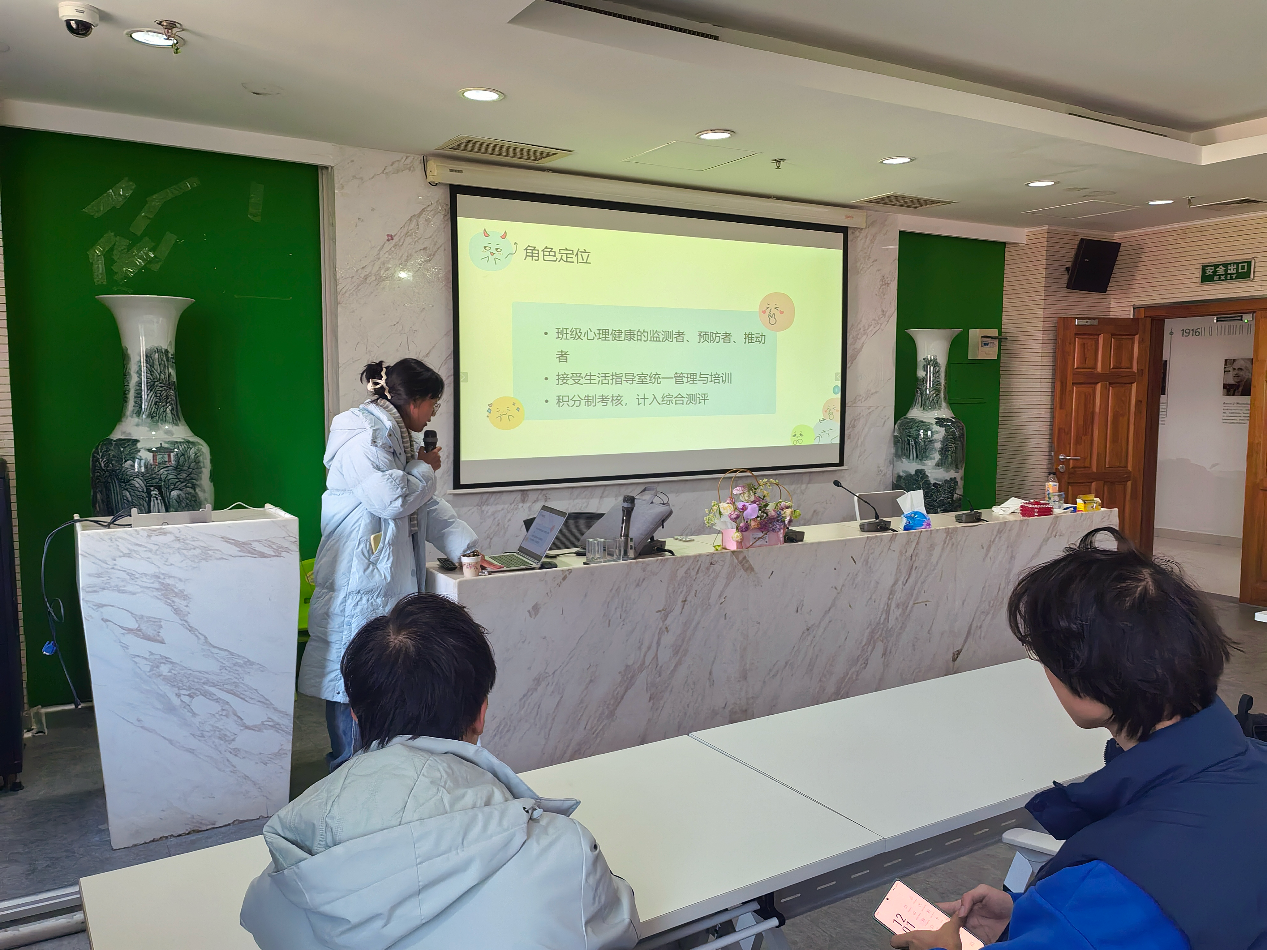 2025年11月3日中午12:00至13:30,心理学部学工办生活指导室在后主楼1318召开“雪绒花工作交流会”。会议由黄利老师主持,五位助管及储备助管协助参与。本次会议旨在交流近期雪绒花工作安排,分享班级心理活动经验,并探讨在工作中遇到的困惑与思考。 会议伊始,黄利老师进行了自我介绍,并向新加入的雪绒花使者介绍了生活指导室的主要职能与工作内容。她从“监测者、预防者、推动者”三个角色定位出发,强调雪绒花是班级心理健康建设的核心力量,应在日常学习生活中关注同学心理状态,积极传递温暖与关怀。