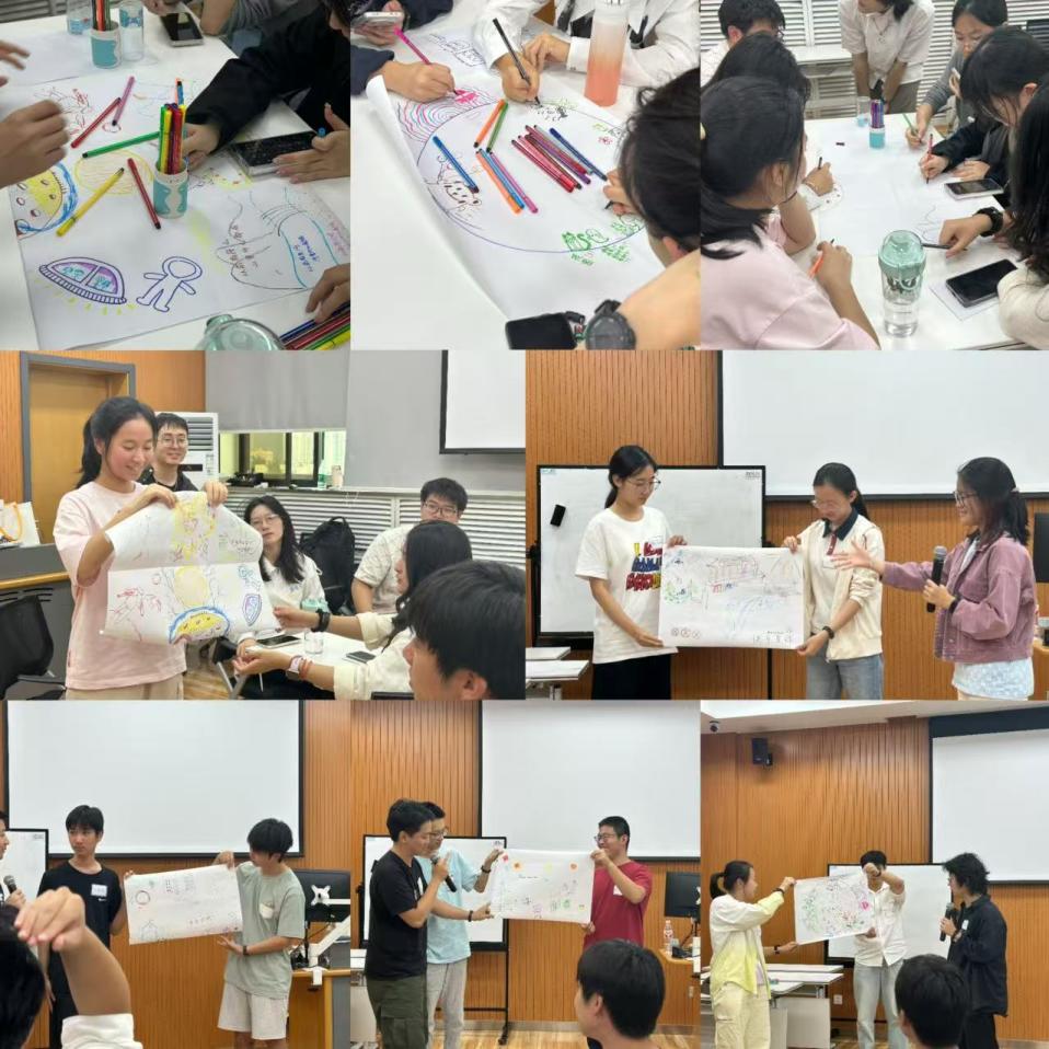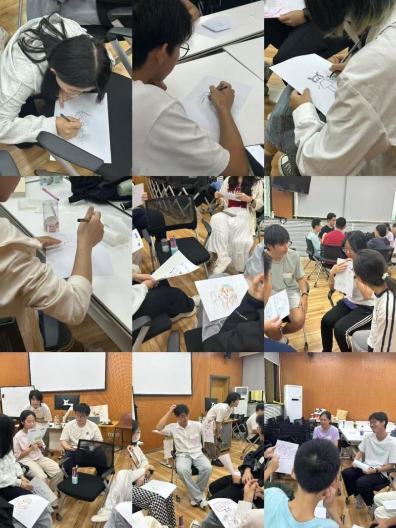 为了帮助新生更快更好地融入班集体、融入校园生活,增强班级凝聚力和团队意识,心理学部2025级“心理+AI”班于9月27日下午在金丰和603顺利开展了首次新生团体辅导活动。在黄利老师、袁毅师兄和唐雨宸师兄的带领下,同学们共同参与了一系列轻松有趣的互动游戏,加深彼此的了解,拉进彼此的距离,感受班级联结感和归属感。 活动尹始,全体同学围成大圈,在袁毅师兄的指引下开展了“小雨中雨大雨”的热身活动,驱散疲乏,放松身心。 紧接在“用双脚丈量房间”的环节,同学们任意游走,熟悉空间、消除陌生感。 随后两人配对结合自身胸前的姓名贴进行自我介绍,既而扩展到四人、九人的互相介绍、接龙介绍,同学们逐渐打开心扉、相谈甚欢,现场氛围热烈浓厚。 紧接着开展了“生日线”的互动环节,同学们依据肢体语言推断彼此的生日,按照生日顺序排成一条线。大家默契十足,成功完成任务。 为了更加深入的了解彼此,同学们以四人为一小组开展了“相同点起立”的游戏并以小组为单位分享了活动中印象深刻的相同点,引起了大家的强烈共鸣,欢声雷动。 随后同学们以纸笔画像的形式介绍自己的三个优势,直观有趣。 最后,同学们开展了“共建星球”的互动游戏,大家脑洞大开,发挥天马行空的想象,提供了众多新颖的素材,共同绘制了专属于彼此的星球愿景,充分展现了合作与创造的力量。 最后,以“心情打分”作结,同学们高高举起自己的手臂,带着热烈欣喜的情绪,与首次团体辅导活动告别。 期待今后更多关于我们“心理+AI”班的故事……