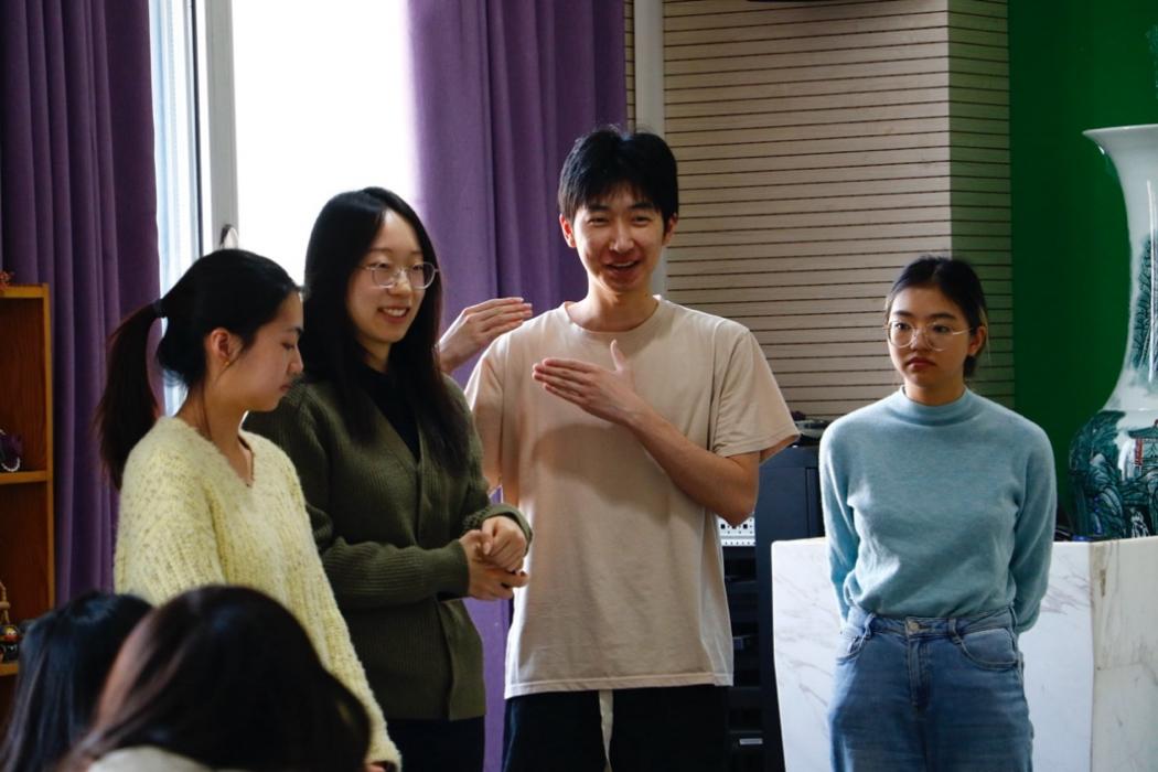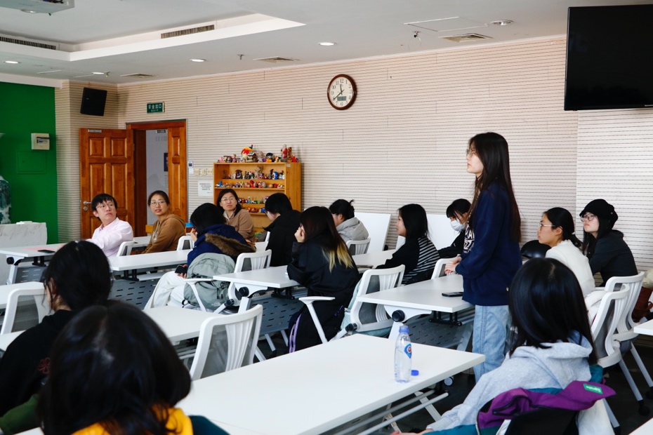 周丽琴老师讲解北京师范大学心理学部人才培养方案 在学生交流环节中,北京师范大学心理学部本科生代表金卓然同学、刘佳仪同学、王杰堃同学、曾杨同学与天津师范大学心理学部德立班同学展开了深入而热烈的交流。双方围绕心理学专业方向选择、科研训练路径、升学规划以及未来职业发展等话题进行了充分探讨,北师大学生结合自身学习与科研经历,分享了个人成长体会与实践经验,为来访同学提供了有益参考。