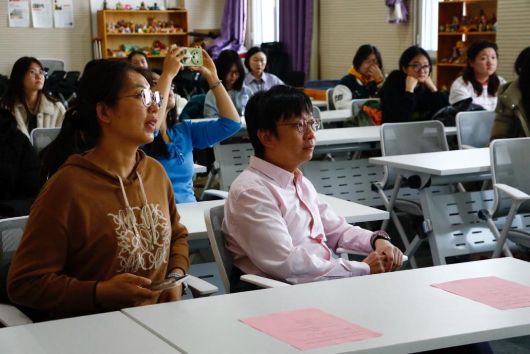 北京师范大学心理学部学生代表回答 交流活动结束后,天津师范大学师生在心理学部同学的陪同下参观了北京师范大学校园,深入了解学校的人文环境与办学氛围。随后,双方师生共同参观了心理学部实验室,就心理学实验研究的具体开展方式、实验设计思路及操作流程等内容进行了细致交流,进一步加深了对彼此教学与科研条件的了解。