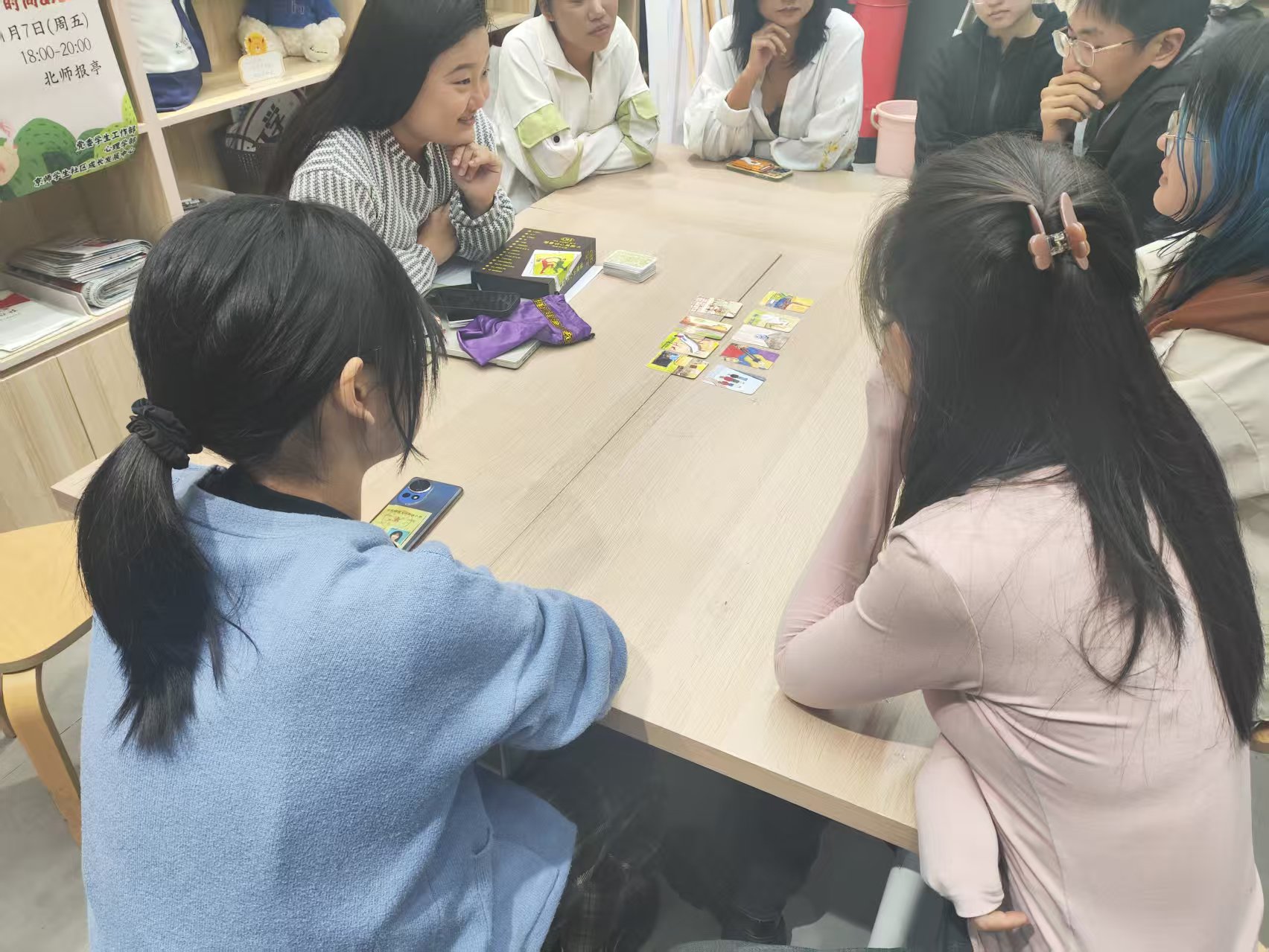 活动全程氛围轻松包容,既为参与的同学提供了自我表达、释放情绪的平台,也通过互动加深了彼此联结。独特的卡牌解读与故事创作,让每个人都收获了新的启发,实现了心灵交流与创意激发的双重效果。 心理学部学工办生活指导室 供稿人:袁艺菲 詹恒婧 供图人:邓云喆 审核人:黄利